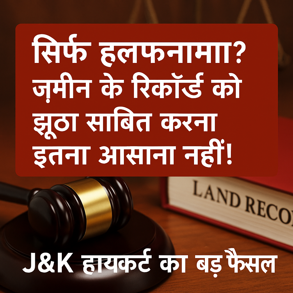 One thought on ““सिर्फ हलफनामा? जमीन के रिकॉर्ड को झूठा साबित करना इतना आसान नहीं! J&K हाईकोर्ट का बड़ा फैसला””